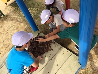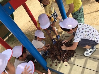 園庭にて遊びが始まりました。何が始まるのかな?