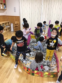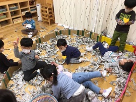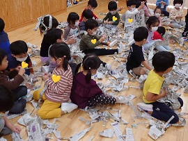 細長く破る子、小さくちぎる子と、指先を上手に使っていました。