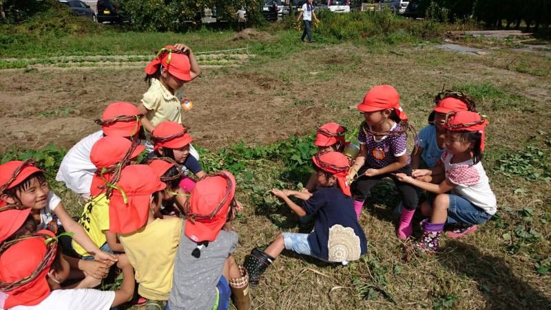 とっても暑い日でしたが、園児達はお芋を抱えて元気に帰ってきました。