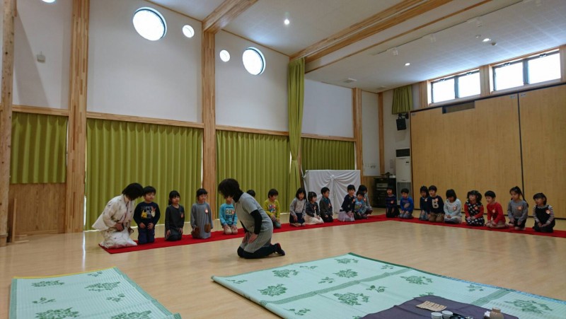 平成30年1月12日、よつば保育園遊戯室にて初茶会を行いました。
