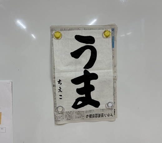 書初めでは、午年にちなんで「うま」の字を書きました!